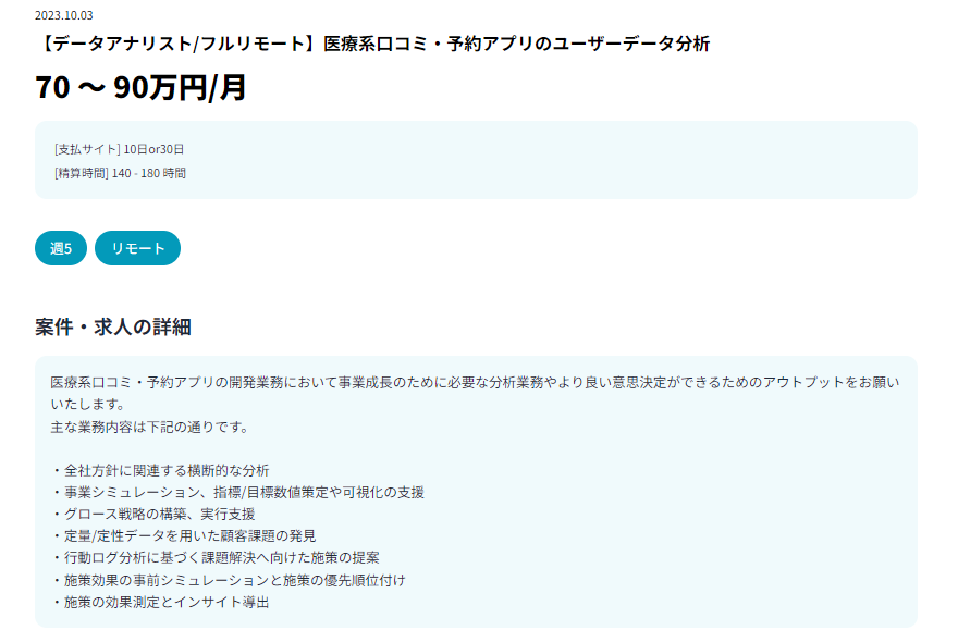そのため、フリーランスエンジニアは案件単価や必要スキル、納期などを比較し、応募する案件を決める必要があります。