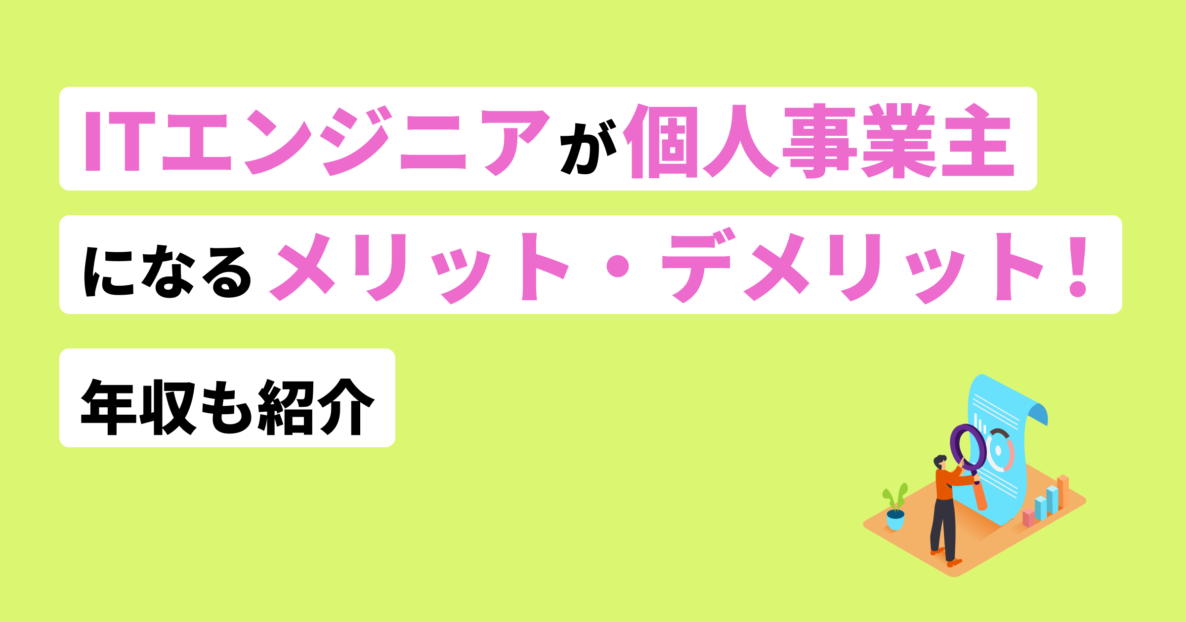 今回は、ITエンジニアが個人事業主に独立するメリット・デメリットを、必要なスキルも交えて解説しました。