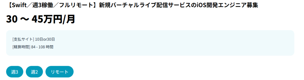 実際に、フリーランスのミカタには次のようなフリーランスエンジニアの副業案件があります。