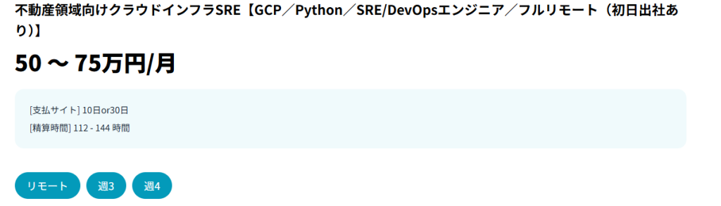 また、フリーランスエンジニアの案件は週5日稼働の案件が多いのは確かです。とはいえ、週2または3日稼働の案件もあります。